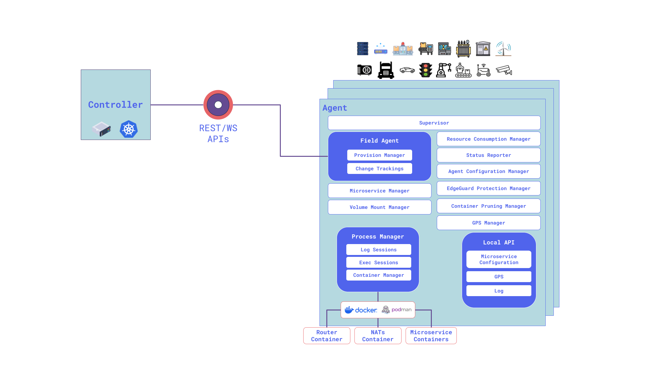While the Agent daemon itself has a CLI, after setting things up a majority of your management tasks will instead be done indirectly using the Controller, which controls the Agent on your behalf, remotely. This allows you to deploy and maintain microservices without needing to SSH directly onto every edge node device. In fact, you will never need to SSH into your agents yourself.