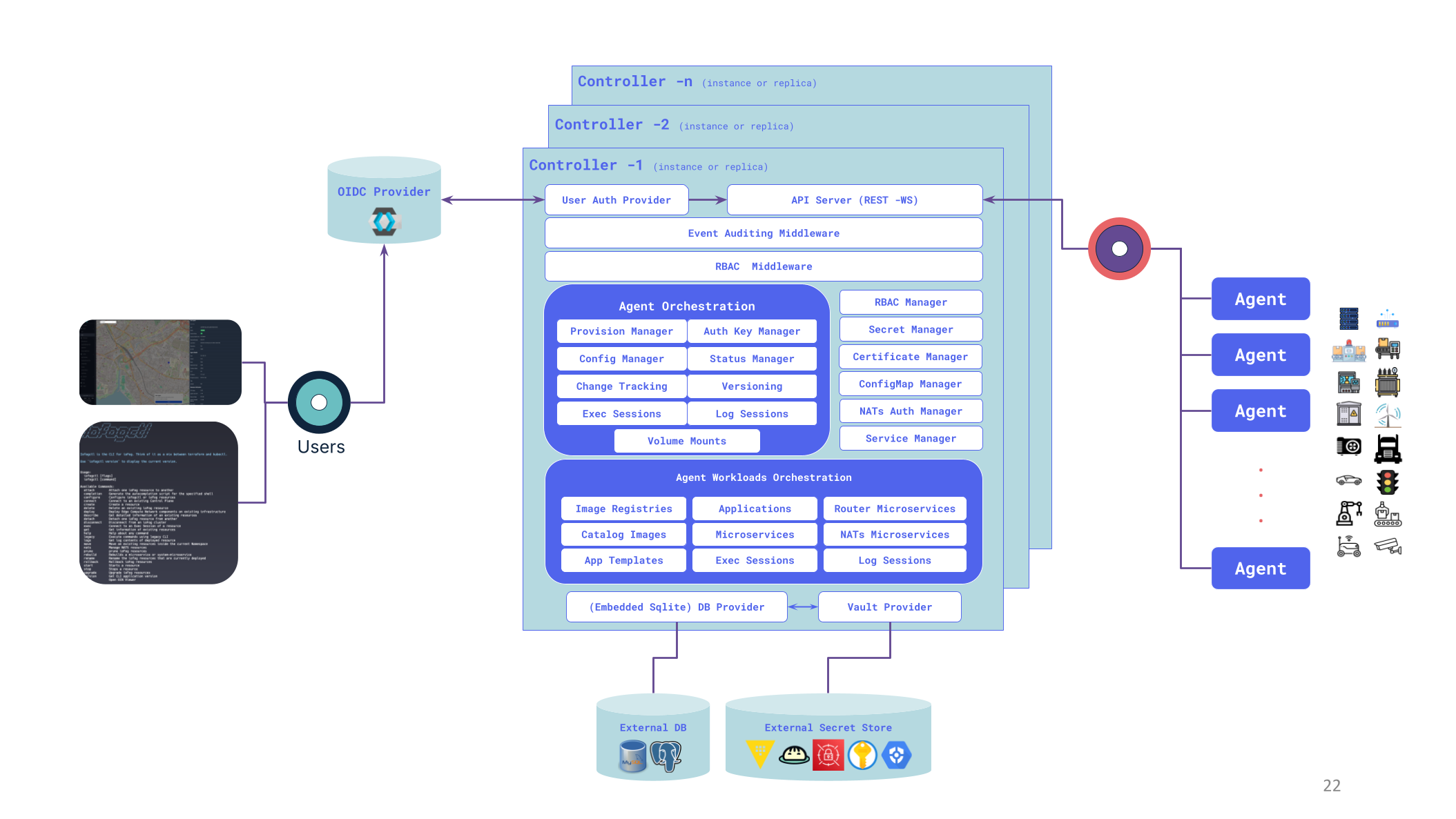 The ioFog Controller is the heart of each Edge Compute Network. The Controller orchestrates all Agents, Microservices, Router and NATs instances, RBAC, Secret and Certificates and much more.