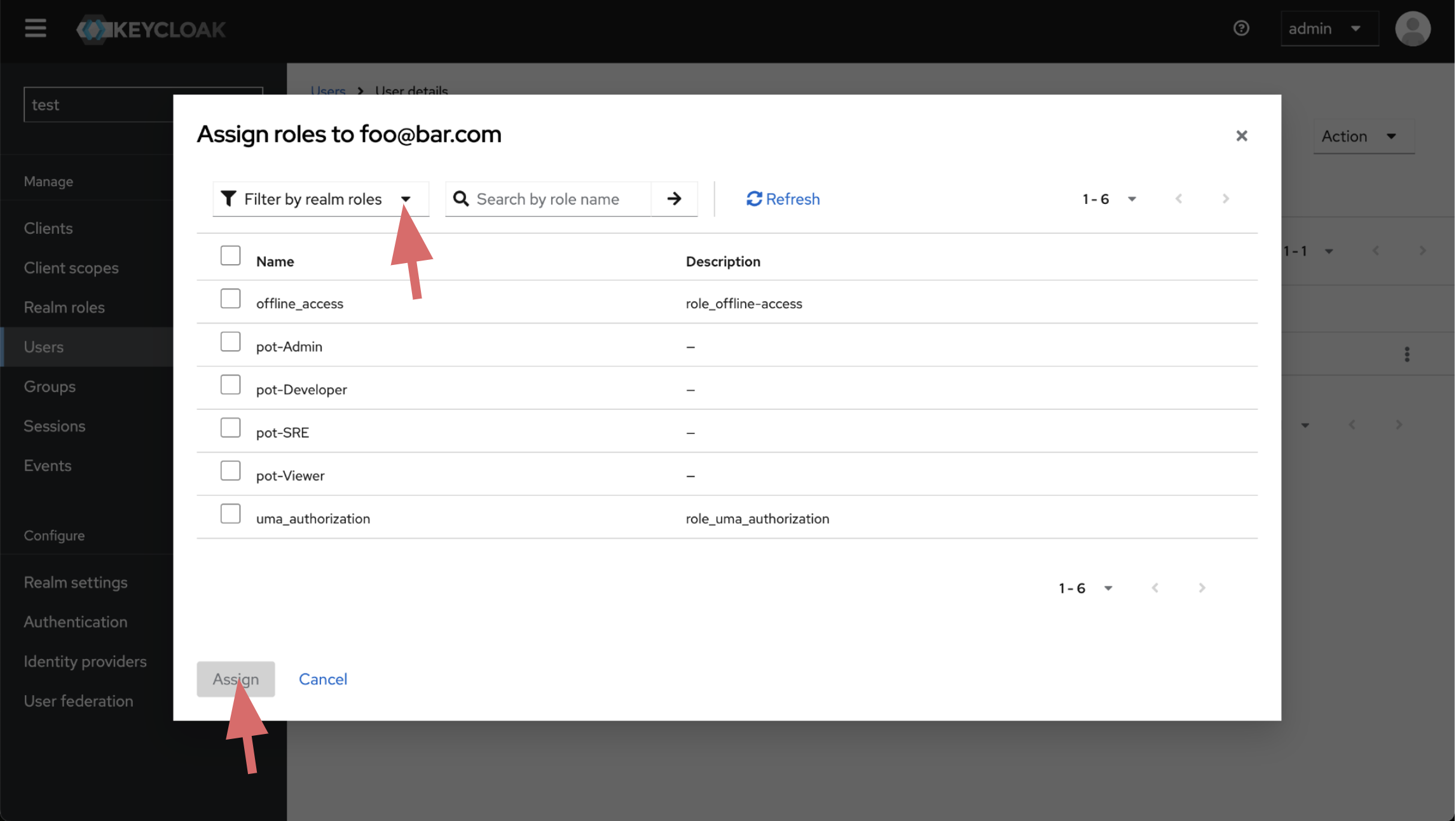 Only users with pot-Admin roles can access Keycloak console and add or remove users, configure realm settings.
